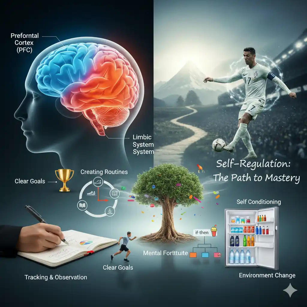 การสร้างวินัย มันเป็สสิ่งสำคัญอย่างมาก นักฟุตบอลอย่าง คริสเตียโน่ โรนัลโด้ ที่ยังอยู่ในจุดสูงสุดของการเล่นได้ แม้ว่าอายุ 40 ปี แล้วก็ตาม เขามีวินัยที่ดี มันเกิดจากการฝึกทั้งนั้น ไม่ได้มีพรสวรรค์เป็นตัวช่วยเลย ลองใช้ วิธีสร้างวินัยและการควบคุมตัวเอง (Self-Regulation) ให้ตัวเองดูซักครั้ง แล้วมาดูกันว่าจะไปได้ถึงไหน